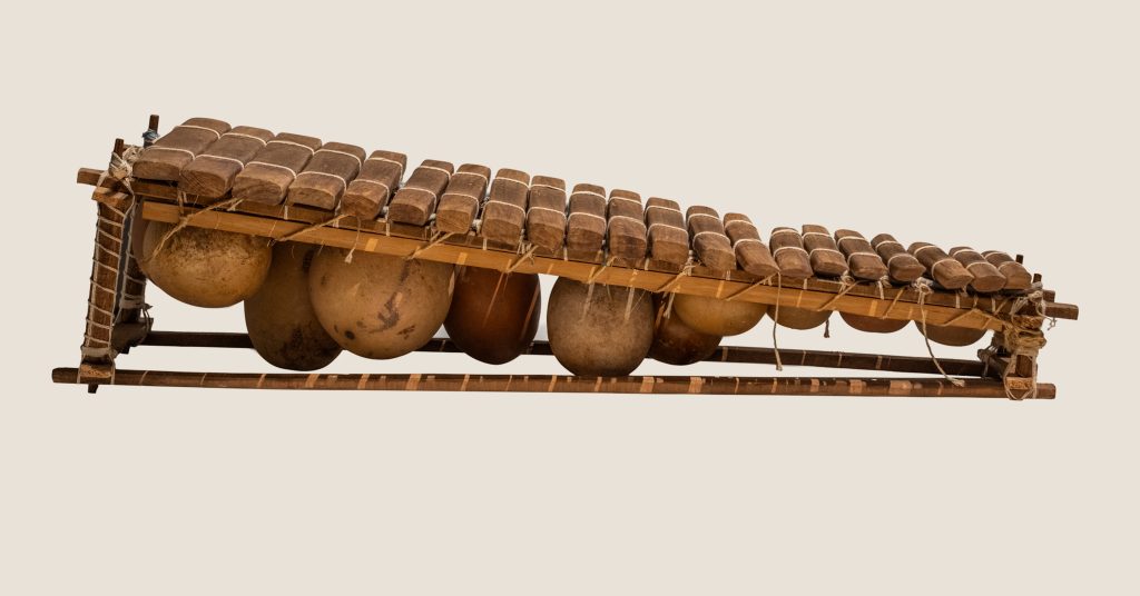 Un instrument de percussion ressemblant à un xylophone, fabriqué à partir de lames de bois et de calebasses qui servent de résonateurs.